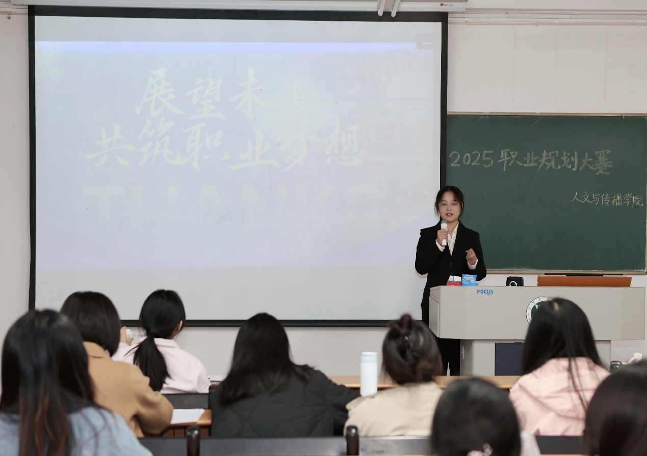 为积极响应学校关于举办大学生职业规划大赛的号召,进一步推动学院就业指导工作走深走实,引导学生科学规划职业发展路径、提升职场适应能力,11月20日,人文与传播学院在二教103教室成功举办2025年大学生职业规划大赛。学院就业工作负责人赵展、杨洋老师出席活动,王淑君、刘园、李可欣、郭世娇、董艺嘉5名老师担任评委。