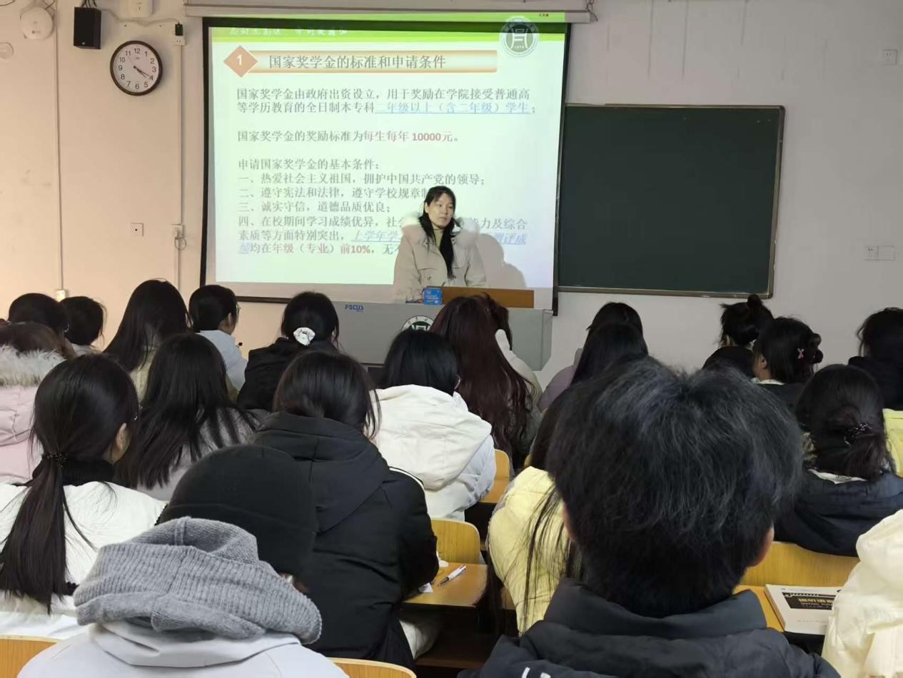 培训会上,资助专员李冉老师系统梳理以“奖、助、贷、勤、补、免”为核心的多元化资助体系:在国家资助层面上,重点介绍了国家奖学金、国家励志奖学金、国家助学金的申请条件、评审程序及资助标准;详尽解析了国家助学贷款(包括校园地国家助学贷款和生源地信用助学贷款)的申请流程、还款政策及征信知识。在学校资助层面上,介绍了我校及学院设立的各类校级奖学金、专项助学金、临时困难补助等项目的具体情况。