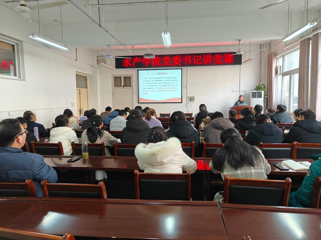为深入学习贯彻党的二十届四中全会精神,把全院教师的思想和行动统一到全会决策部署上来,12月30日,水产学院党委书记张淮以《深学笃行党的二十届四中全会精神 奋力书写教育强国建设新篇章》为题,为全体教师讲授专题党课。