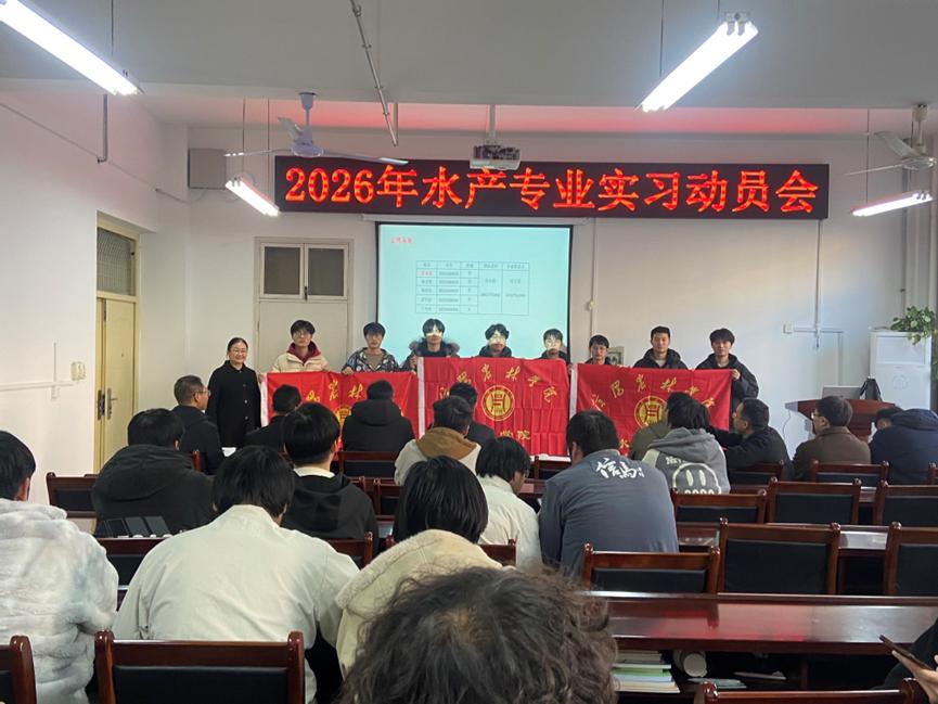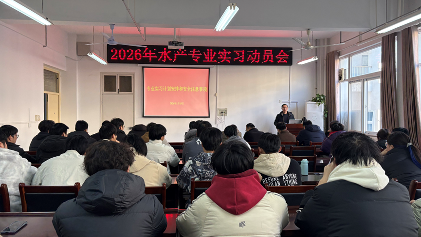2026年1月15日,水产学院在实验楼2C328会议室举行2026年专业实习动员大会。院党委书记张淮、副院长伦峰,七名专业实习带队教师及即将参加实习的全体学生共同参会,会议由学院实验教学中心主任荀鹏伟主持。