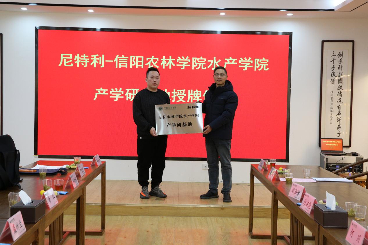1月12日上午,水产学院与广州市尼特利技术有限公司正式签署校企合作协议,同步举行“信阳农林学院产学研基地”授牌仪式。双方将围绕水族科学与技术领域,在人才培养、专业共建、产学研协同等方面开展深度合作,共同推进产教融合与育人机制创新。