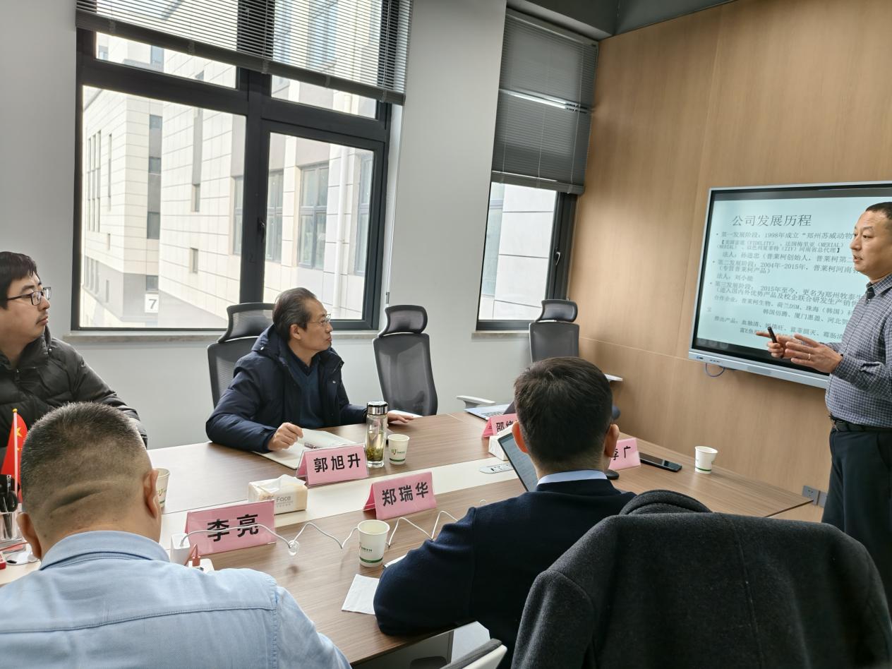 上午在郑州牧泰生物科技有限公司,该公司负责人李广详细介绍了公司发展历程、战略定位及未来规划。作为一家专注于饲料添加剂研发与应用的高新技术企业,牧泰生物不局限于家禽与猪用饲料添加剂领域,更是将目光放在水产饲料添加剂领域,通过改善水产动物肠道健康,尝试解决有害病菌对水产动物造成的威胁,推动“禁抗”背景下绿色、安全、高效的水产饲料产业发展。牧泰生物核心产品“血独清”在家禽和生猪养殖中展现出显著抗病毒与免疫调节效果,我院专家高度认可其在水产养殖中的应用潜力,并愿联合开展科研攻关,推动其在水产饲料添加剂领域的拓展应用。