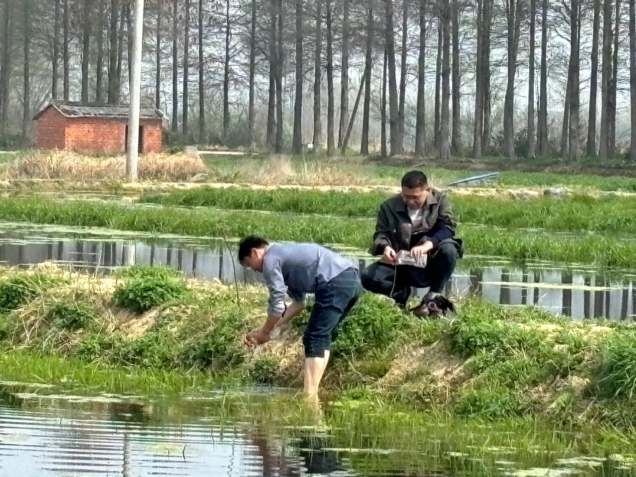 光山县砖桥镇昌盛农业专业合作社主营稻渔综合种养,近年来先后发展平田式养殖、一稻两虾、芡实-小龙虾共作等多种模式,技术水平高,产出效益好。眼下,正是该合作社小龙虾养殖季节和罗氏沼虾养殖准备期。近年来郭旭升教授带领团队针对该合作社开展了长期的跟踪服务。29日上午,服务队来到该村,实地查看生产情况,对合作社更新水草品种的试种等情况进行详细的了解,并对目前春季小龙虾养殖,病害防控,田间管理、营养调控、罗氏沼虾养殖准备等进行了细致的指导。