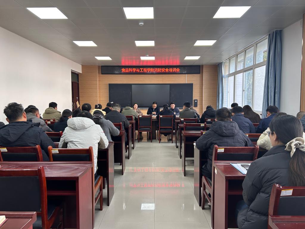 为切实筑牢校园消防安全“防火墙”,全面提升师生安全防范意识与应急处置能力,11月18日,食品科学与工程学院组织召开消防安全专题培训会。学院领导班子成员及全体教师参加会议。会议由院长李建芳主持。