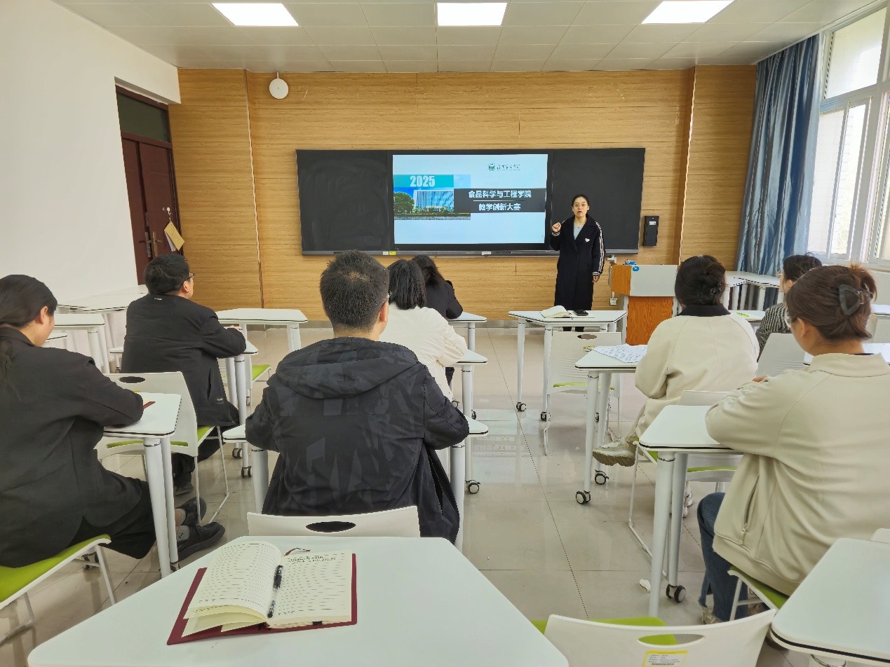 为全面推进课程思政与“四新”建设深度融合,深化校企协同产教融合,推进实验教学改革,提升教师的思想政治素质、教学技能和创新能力,坚持“以赛促教、以赛促创、以赛促学、以赛促融”,充分发挥大赛的示范引领作用,依据《关于举办2025年度信阳农林学院教师课堂教学创新大赛》安排,食品科学与工程学院于2025年4月2日进行了2025年度教师课堂创新大赛。