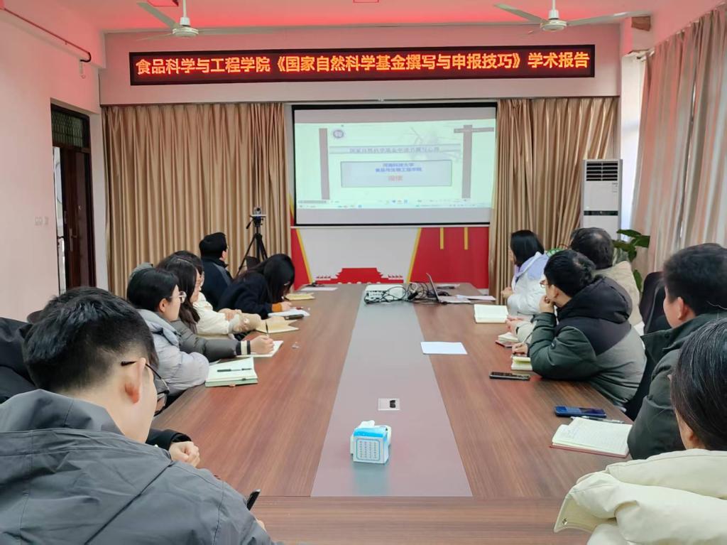 为助力教师提升国家自然科学基金申报质量,破解申报过程中的重点难点问题,1月7日下午,食品科学与工程学院特邀河南科技大学食品与生物工程学院段续教授,为我院教师作《国家自然科学基金撰写与申报技巧》专题学术报告,会议由学院副院长王荣荣主持,学院60余名教师参加会议。