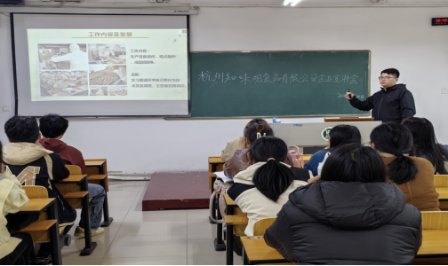 为深化校企合作,搭建学生与优质企业的交流平台,助力学生拓展就业渠道。10月24日,杭州知味观食品有限公司校园宣讲会在二教208教室成功举办。本次活动为我校学子提供了深入了解食品行业发展趋势、把握就业机会的重要平台,吸引了众多相关专业学生参与。