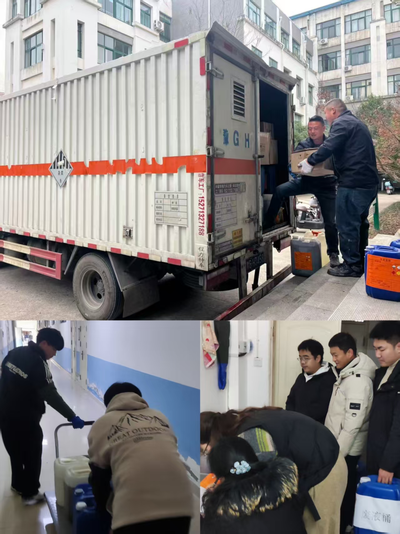为切实筑牢实验室安全防线,有效化解危险废物的潜在风险,2026年1月10日上午,实验室管处联合动物科技学院师生,顺利完成了2025年秋季学期实验室危险废物的集中转运处置工作,此次工作涉及农学院、林学院、药学院等8个涉化单位。在转运前,学校发布专项通知,各涉化单位严格按照要求完成了分类整理、台账核查等准备工作。此次处置共涉及危险废物2.5吨,涵盖化学废液、废试剂瓶、固体废弃物及过期药品等。各类废物均按环保监管要求规范封装与交接,整体流程衔接顺畅。