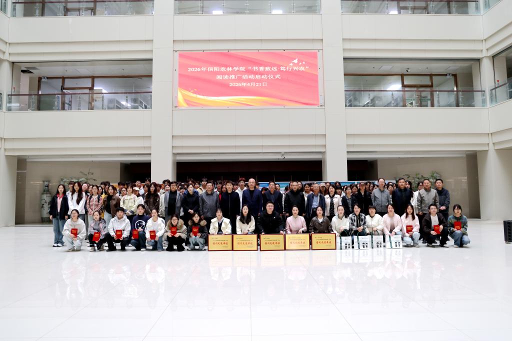 4月21日,我校2026年“书香致远·笃行兴农”阅读推广活动启动仪式在图书馆大厅举行。校党委委员、副校长黄立,党委宣传部、党委学生工作部、校工会、校团委相关负责同志及图书馆全体馆员、各学院师生代表参加。仪式由图书馆党总支书记杨鹭主持。