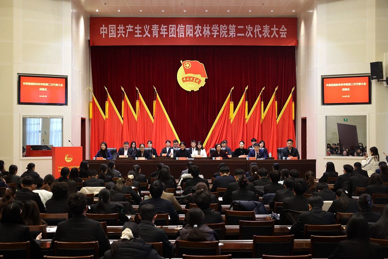 高举旗帜跟党走,挺膺担当建新功!1月9日,共青团信阳农林学院第二次代表大会在图书馆六楼报告厅隆重开幕。校党委副书记、工会主席王万玲,共青团河南省委高校部部长刘淑丽,共青团信阳市委书记李菲漓出席开幕式并讲话。党委委员、副校长易军鹏、刘开华、张光辉出席开幕式。河南农业大学、信阳师范大学、信阳职业技术学院团委书记到会祝贺。学校相关职能部门负责同志、各学院党委书记、副书记和175名代表参加大会。