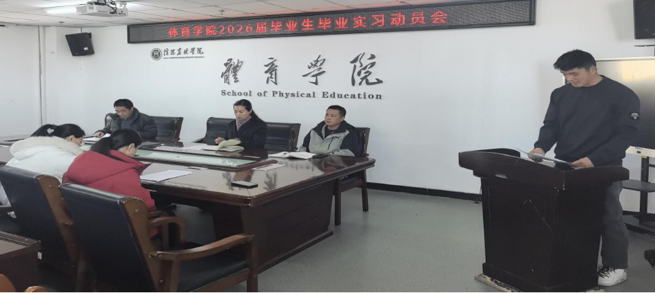 为引导毕业生明确实习目标、强化责任意识,确保毕业实习工作平稳有序推进,2026年1月7日,体育学院在学院会议室召开2026届专科毕业生毕业实习动员会。学院领导班子成员、辅导员、指导教师代表及全体2026届专科毕业生参加会议。会议由副院长郭德兵主持。