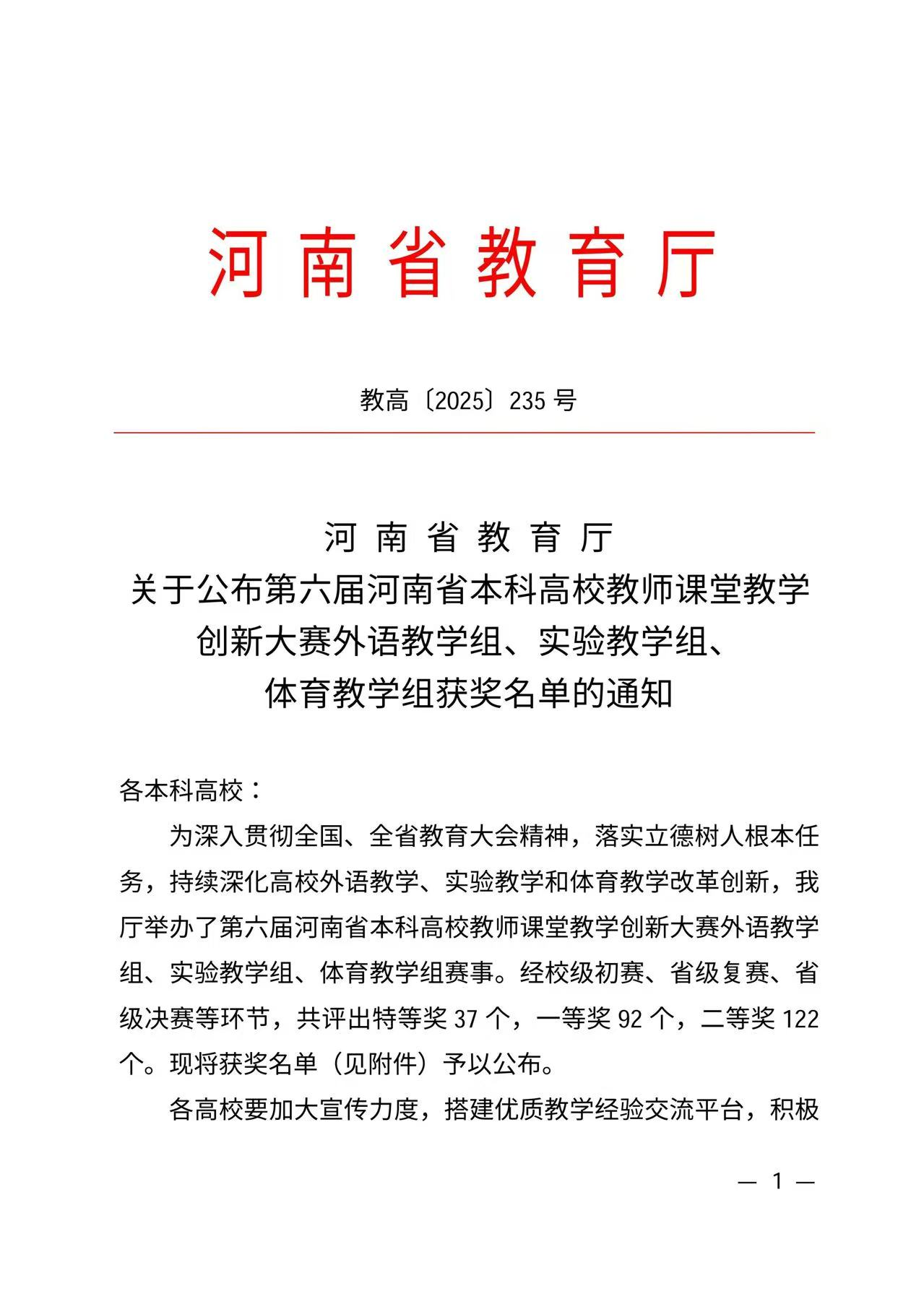6月21—22日,第六届河南省本科高校教师课堂教学创新大赛外语教学赛道暨第十六届全国高校外语教学大赛河南省赛(大学英语视听说组)在郑州商学院举行。我院青年教师黄露露代表学校参赛,荣获视听说组二等奖。