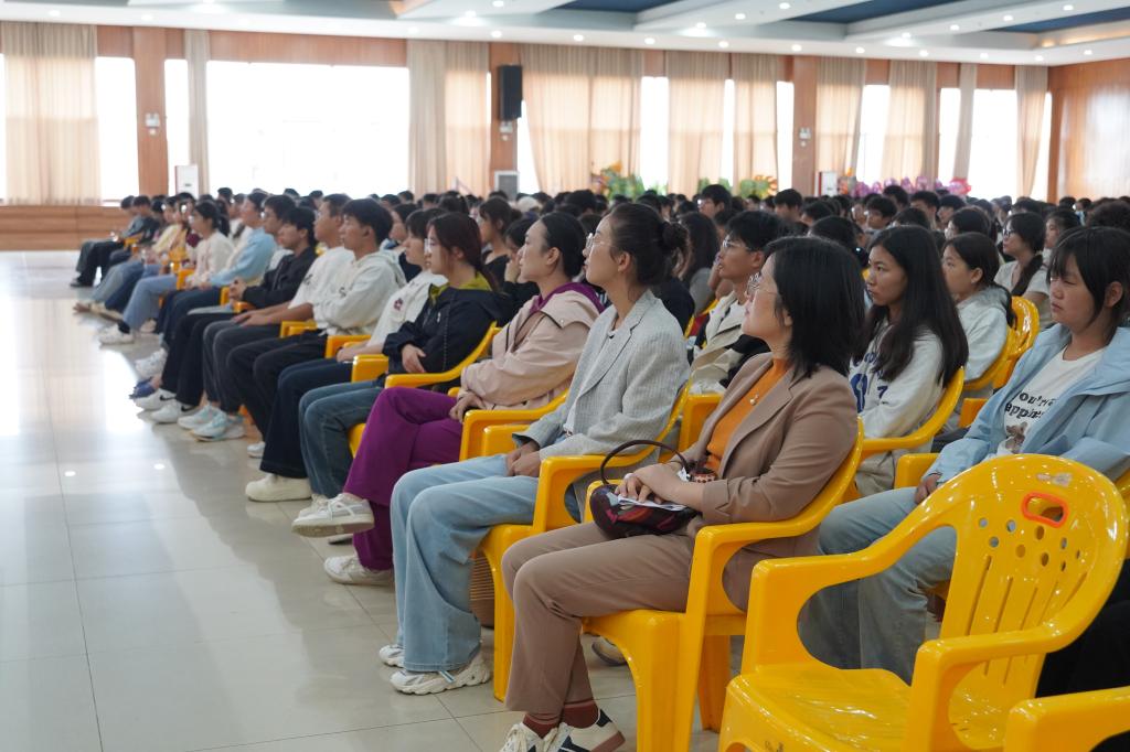 学院院长赵喜玲以《认识新家园 规划新起点》为题,首先引导新生深入了解信阳这座城市的历史底蕴与发展现状。信阳不仅是一座“豫风楚韵”的人文之城,更是一片红色热土,是邓颖超等革命先辈的故乡,也是众多开国将领成长的地方。通过介绍信阳的红色历史、绿色生态与城市魅力,增强了新生对第二故乡的认同感与归属感,激发了他们扎根中原、服务国家的责任意识。