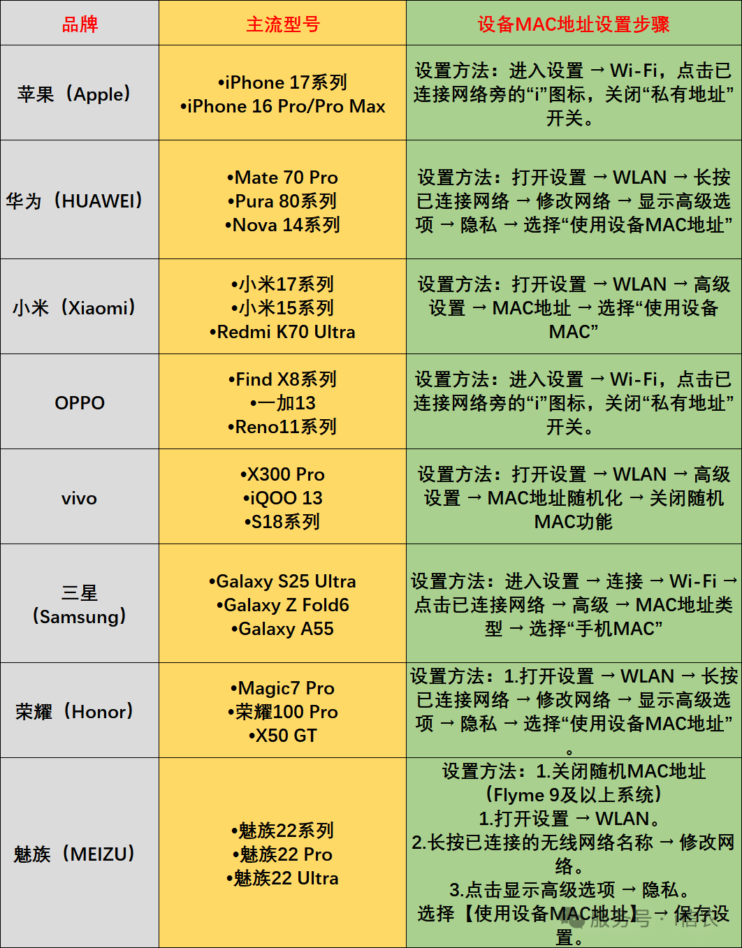 主流手机品牌【设备mac地址设置】及【认证流程】