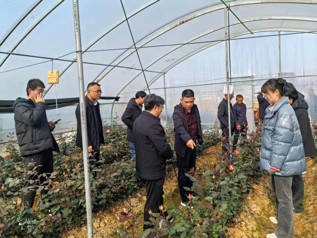 随后,团队来到前进村月季种植基地,仔细察看植株长势与花芽分化情况,并与种植户交流日常管理措施。针对农户提出的“夏季花型偏小、冬季开花量少”等问题,团队分析指出,其关键在于品种适应性与栽培管理不匹配。建议引进‘卡罗拉’‘骄傲’等耐寒耐热品种,并提出了“夏季遮阳降温、增施磷钾肥”与“冬季覆多层膜保温、调控水肥”相结合的精细化管理方案,以助力基地实现“四季有花、花品优良”的生产目标。