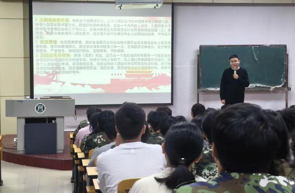 付树坤老师向新生们介绍了共青团的光辉历史,讲解共青团的组织架构与运行机制,对团员的权利与义务进行深入解读,细致说明了入团流程,介绍学院共青团开展的各类特色活动。在互动环节,学生们就团员档案转接、团内评优评先、如何更好地参与团的活动等问题积极提问,付老师一一耐心解答,现场气氛热烈。