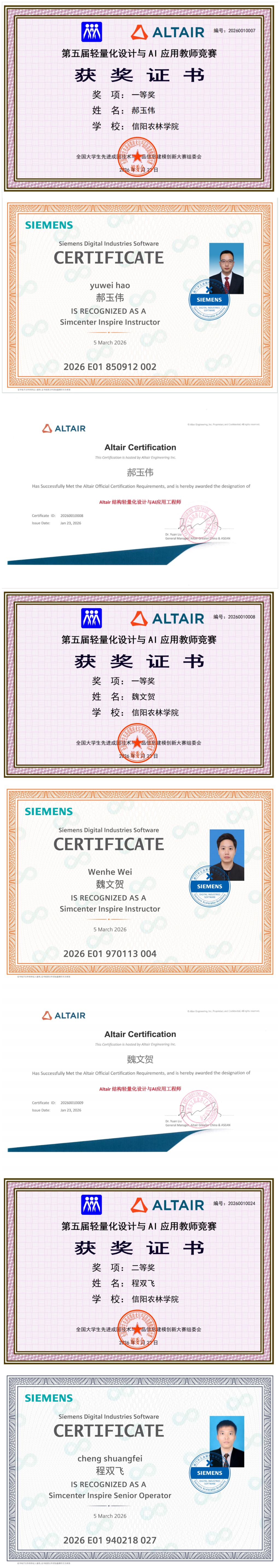 近日,由全国大学生先进成图技术与产品信息建模创新大赛组委会举办的第五届轻量化设计与AI创新应用教师培训及竞赛结果正式揭晓,信阳农林学院园艺学院教师表现优异,获得多项殊荣,充分彰显了学院师资队伍建设的扎实成效与教学创新实力。