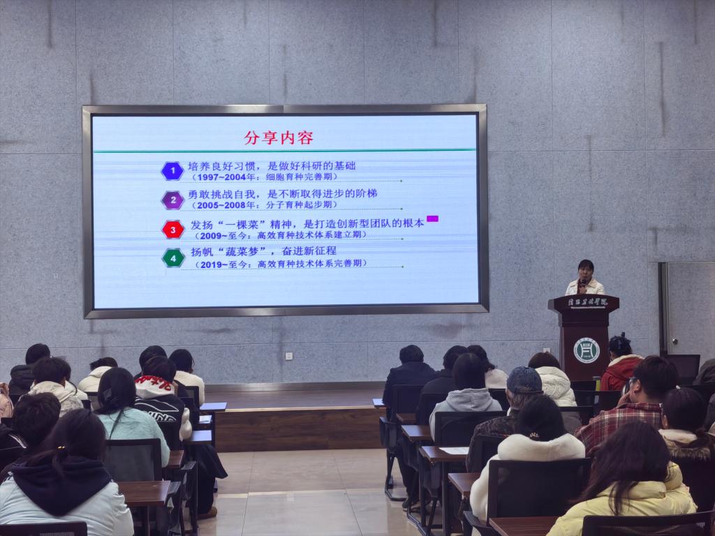 “科研没有捷径,唯有脚踏实地。”原玉香研究员勉励在场学子,要珍惜在校时光,打好专业基础,培养严谨的逻辑思维和坚韧不拔的意志。她寄语青年师生,要将个人发展融入到国家农业现代化的伟大事业中,在看似平凡的“一棵菜”上做出不平凡的学问,让人生在服务“三农”中绽放光彩。