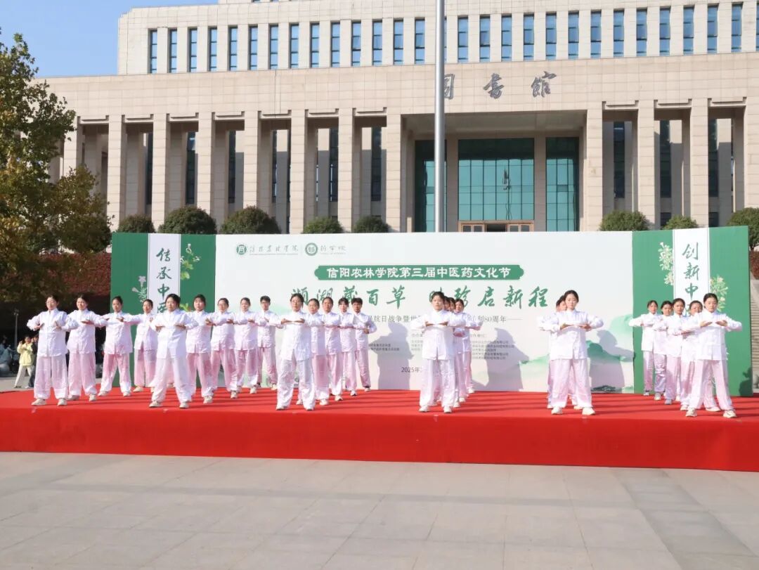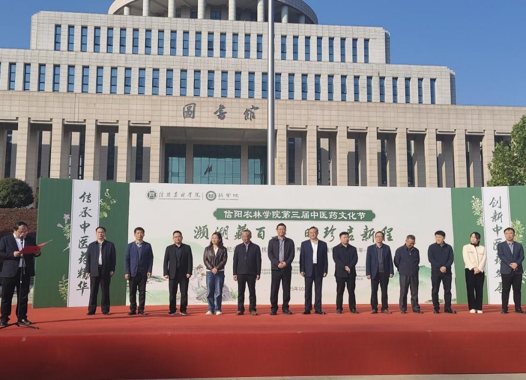 10月28日,信阳农林学院第三届“濒湖藏百草,时珍启新程”中医药文化节于汝宁广场开幕。校党委委员、副校长李益民,易军鹏,雷振山,学校相关职能部门负责同志,部分学院党委书记、院长,校企合作单位代表、师生代表参加了开幕式。开幕式由药学院院长王家东主持。