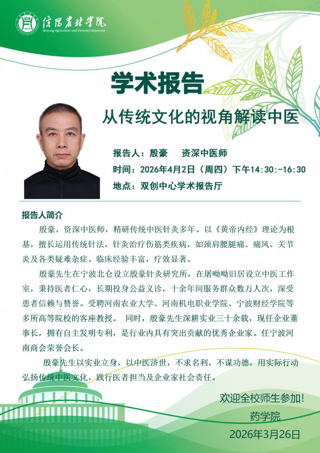 【学术报告】“濒湖讲堂”第14期:从传统文化的视角解读中医