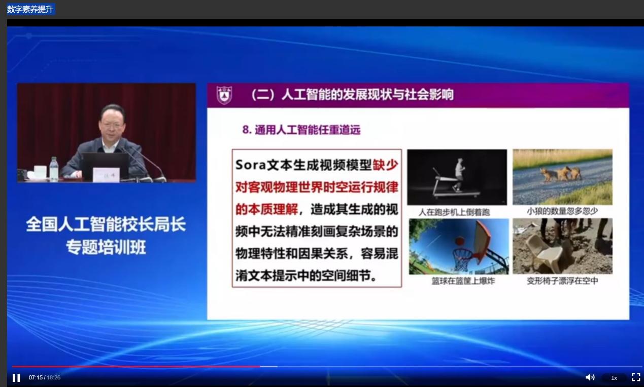 本次培训内容包括“大力弘扬教育家精神”“数字素养与技能提升”“科学素养提升”“心理健康教育能力提升”“教学科研”五个主题讲座,学习内容丰富、教学形式多样,为教师积累AI赋能智慧教育案例和素材、促进学生心理健康的探索与实践、提升高校教师发展提供了契机。