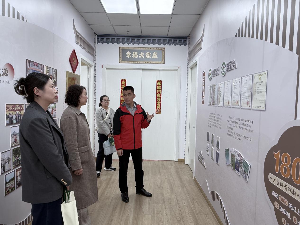 在走访上海添健企业发展有限公司时,负责人韩文才向学院一行展示了企业的核心产品,包括主打“青钱柳”系列产品及各类康养产品,并阐述了企业的发展理念与市场规划。在企业的精心安排下,张艳玲一行不仅参观了公司总部,还实地考察了两家线下门店,对企业的运营模式和市场终端有了更直观、深入的了解。